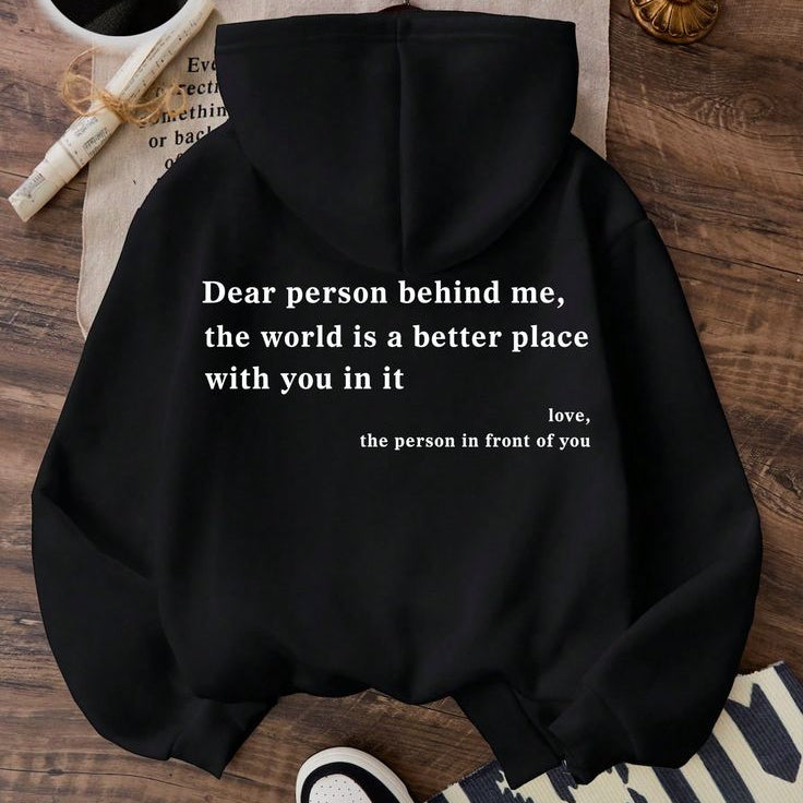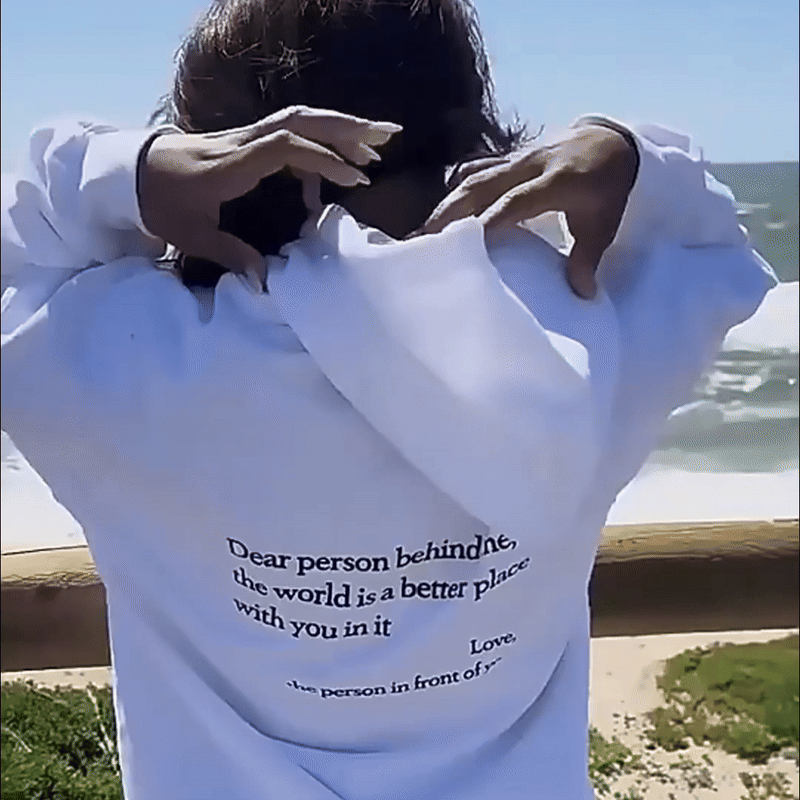 "Chère personne derrière moi, le monde est meilleur grâce à toi.